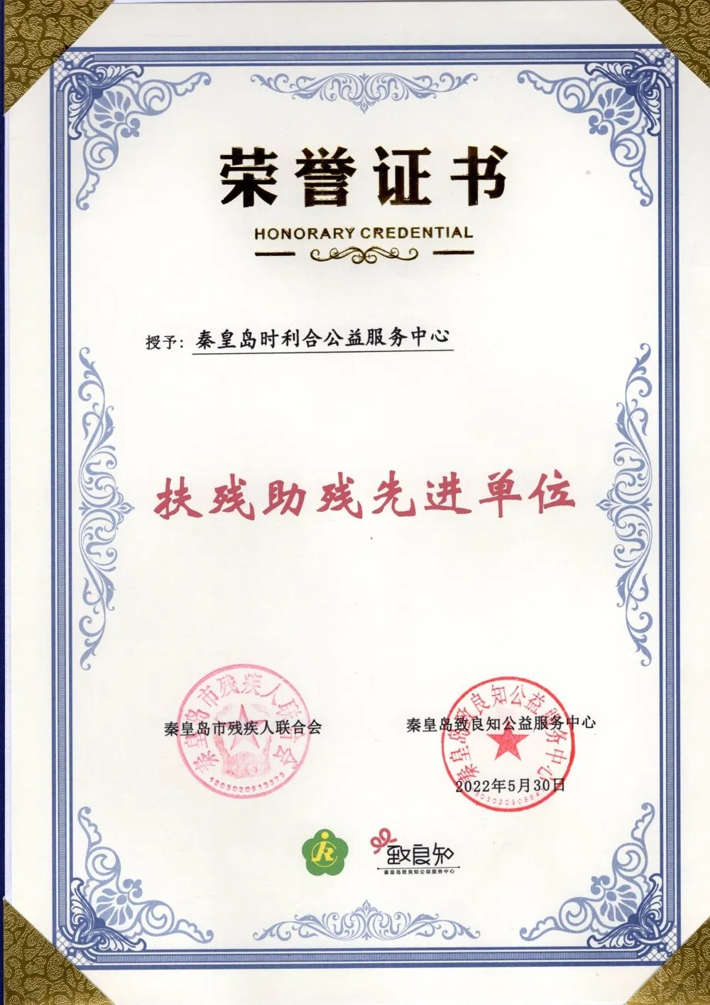 為了更系統、更完善的服務殘疾人、救助弱勢群體及困難人群,做好社會援助,也為了帶動更多的員工、客戶及員工家屬一起做公益,承擔社會責任,為社會的和諧發展添磚加瓦,我們于2021年7月成立了時利合公益服務中心。并于2022年5月榮獲秦皇島市殘疾人聯合會頒發的“扶殘助殘先進單位”稱號。